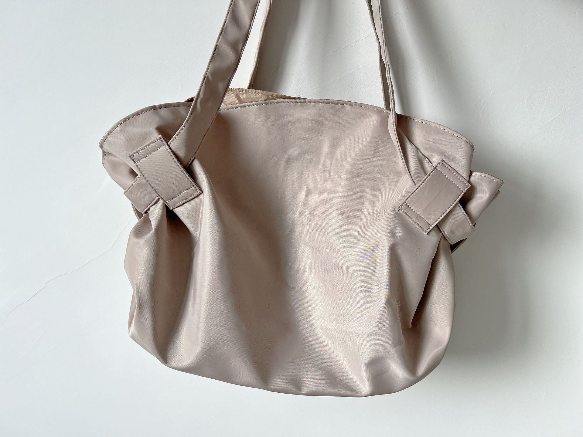 To store, gather edges and pull the closure to convert back into a tote. Store in the included travel pouch.
