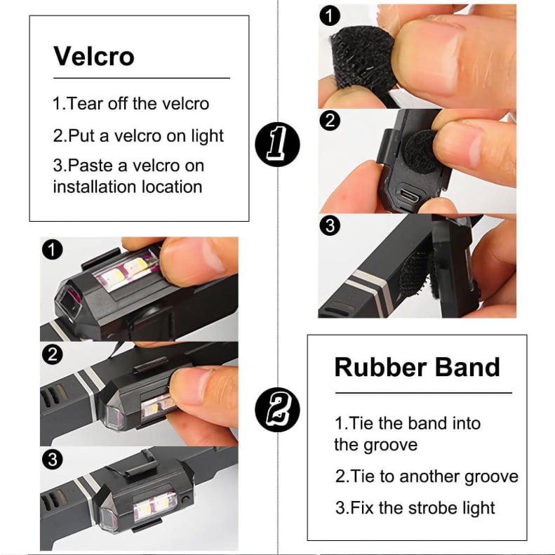 - Product include: LED Strobe Lights, Wireless Remote Control, Rubber Rings, Velcro Stickers ,USB Charging Cable, User Manual